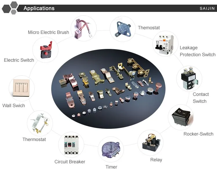 Контактный материал AgSnO2 является экологически чистым и нетоксичным, обладает превосходной устойчивостью к сварке плавлением и абляции дуги. В целом, AgSnO2 имеет лучшую устойчивость к абляции дуги, чем AgCdO, в условиях высоких токов; AgSnO2 имеет высокое контактное сопротивление при ламповой или емкостной нагрузке, но это проявляется при постоянном токе или нагрузке типа «щелчок». Низкое и стабильное контактное сопротивление; материал AgSnO2 обладает лучшими передаточными характеристиками, чем AgCdO, в условиях постоянного тока. Контактные материалы AgSnO2 широко используются в контакторах большой мощности, силовых реле, низковольтных выключателях средней и малой мощности и автомобильной электронике.